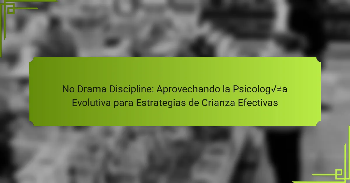 La psicología evolutiva proporciona conocimientos que mejoran No Drama Discipline al enfatizar la comprensión del comportamiento infantil. Este enfoque se centra en las necesidades de desarrollo innatas de los niños, promoviendo la empatía y la conexión. Reconocer que los niños están programados para el apego ayuda a los padres a responder de manera efectiva a los arrebatos emocionales. Por ejemplo, en lugar de reaccionar con frustración, los padres pueden participar en discusiones calmadas que fomenten la regulación emocional. Este método se alinea con el atributo fundamental de las relaciones nutritivas, lo que lleva, en última instancia, a estrategias de crianza más efectivas. El énfasis en los principios evolutivos apoya una visión holística del desarrollo infantil, haciendo de No Drama Discipline un marco valioso para la crianza moderna.