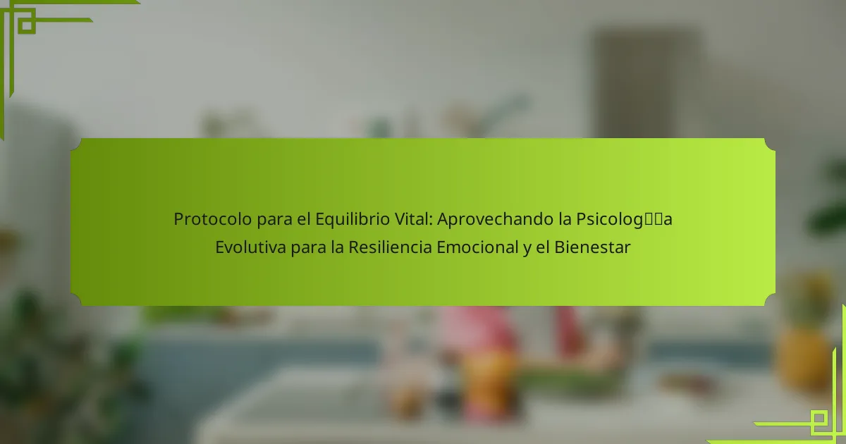 Mejorar la resiliencia emocional es crucial para navegar los desafíos de la vida. El Protocolo para el Equilibrio Vital integra la psicología evolutiva para proporcionar información sobre estrategias emocionales adaptativas. Enfatiza la autoconciencia, la regulación emocional y la importancia del apoyo social. Este enfoque holístico ofrece pasos prácticos para el crecimiento personal y el bienestar a largo plazo.